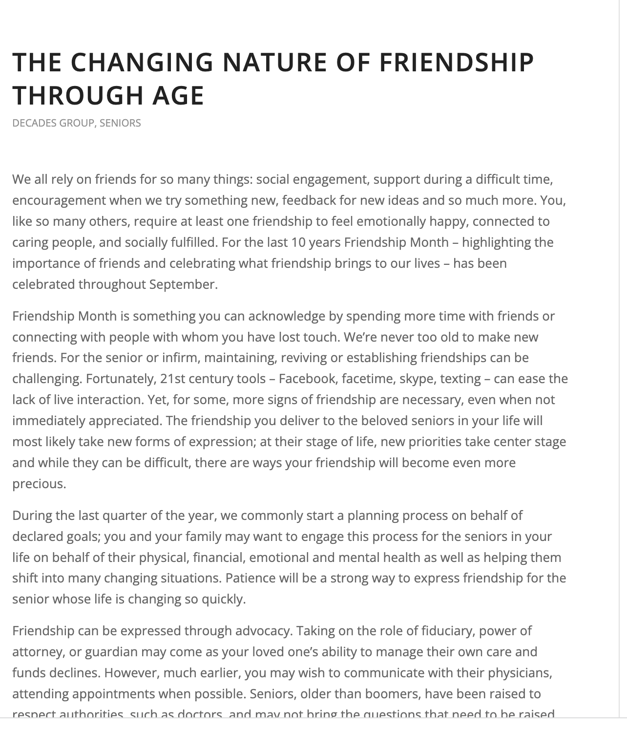 What is going on for them when they realize it’s time to make a change? Is dad’s thinking becoming a bit cloudy? Did mom have a bad fall? Are there disagreements with siblings about who’ll step in?