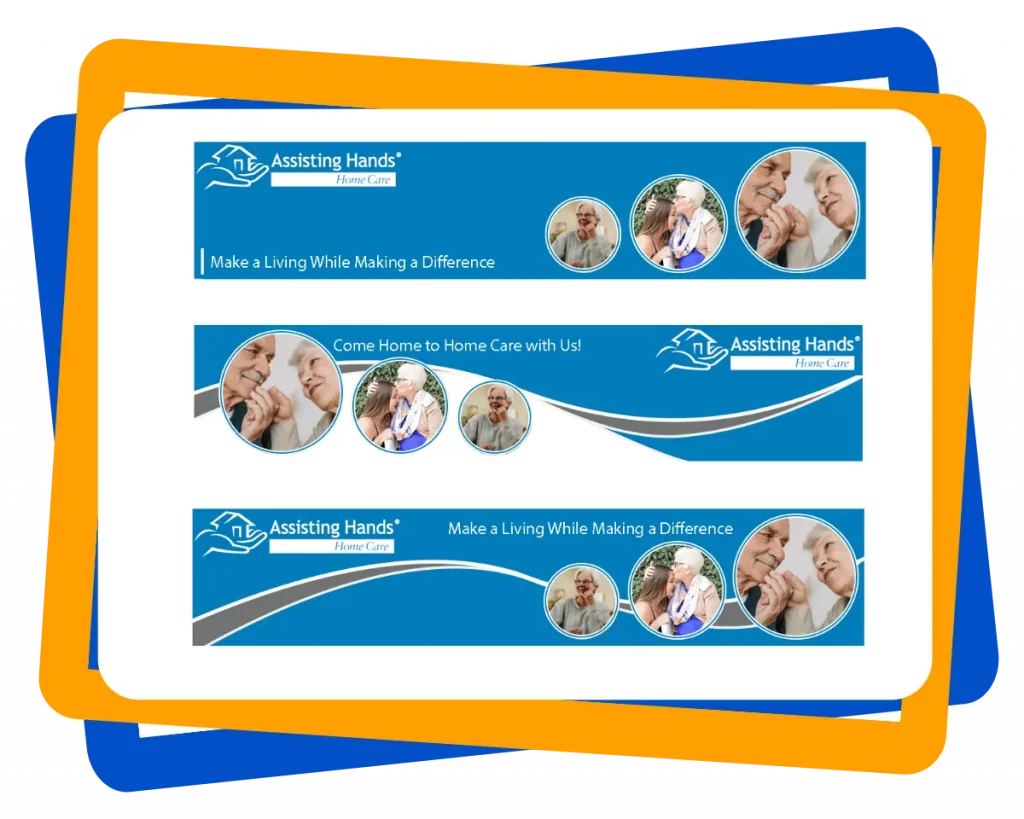 Here’s another one we did for Assisting Hands; they needed a recruitment banner for a campaign seeking care managers. The client wanted to convey its company values, its tagline, colors and population. You can see we provided 3 options for them. And by the way – we heard they got a record number candidates for the position!